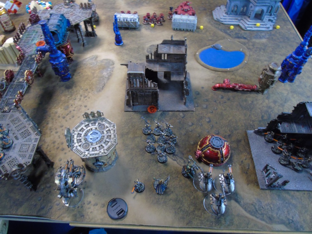 So there was a bit of a background to this game as Jon’s Blood Angels had faced my necrons a few weeks earlier and tabled them by turn two. On consideration (and given the litany of victories Jon has in our little casual group) we both wondered whether or not his primaris force was broken due to the rules more than anything else. He rarely looses to anything not primaris and my necrons have a good record against most armies other than primaris. As a result we decided on a rematch where he would use the older tactical marines in order to see if that made a difference…